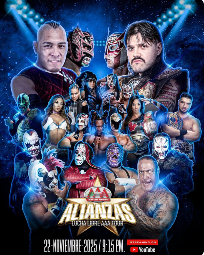 On Saturday, November 22nd, AAA has its “Alianzas” show, set to emanate from the Gimnasio Olímpico Juan de la Barrera in Mexico City, Mexico! The event begins at 10:15 PM EST and will stream on both AAA and WWE’s YouTube channels.