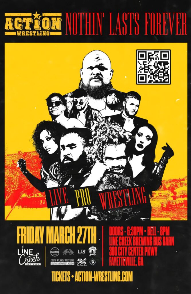 On Friday, March 27th, ACTION Wrestling returns to the Line Creek Brewing Bus Barn with “ACTION: Nothin’ Lasts Forever!” The show begins at 8 PM EST. There is currently no news of live streaming as of this writing. The event will be available for replay on IWTV.