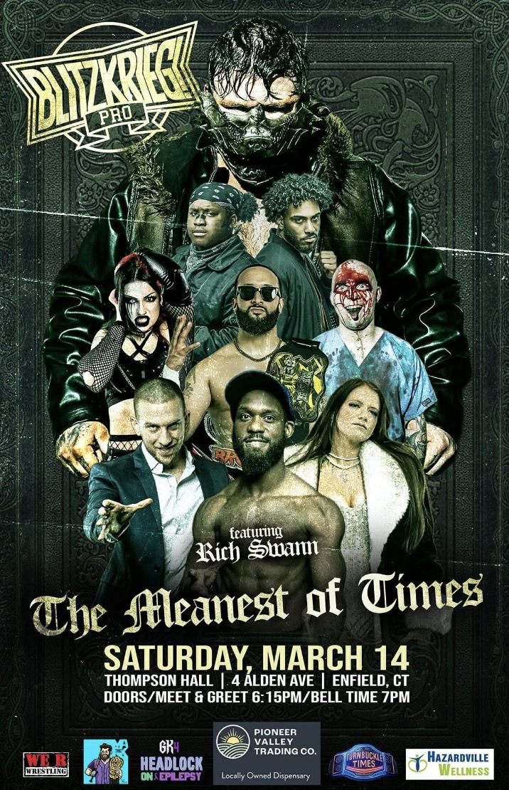 On Saturday, March 14th, Blitzkrieg Pro returns to Thompson Hall in Enfield, CT, with their latest must-see spectacular “Blitzkrieg Pro: The Meanest Of Times!” This enormous show will stream live on IWTV beginning at 7 PM EST.