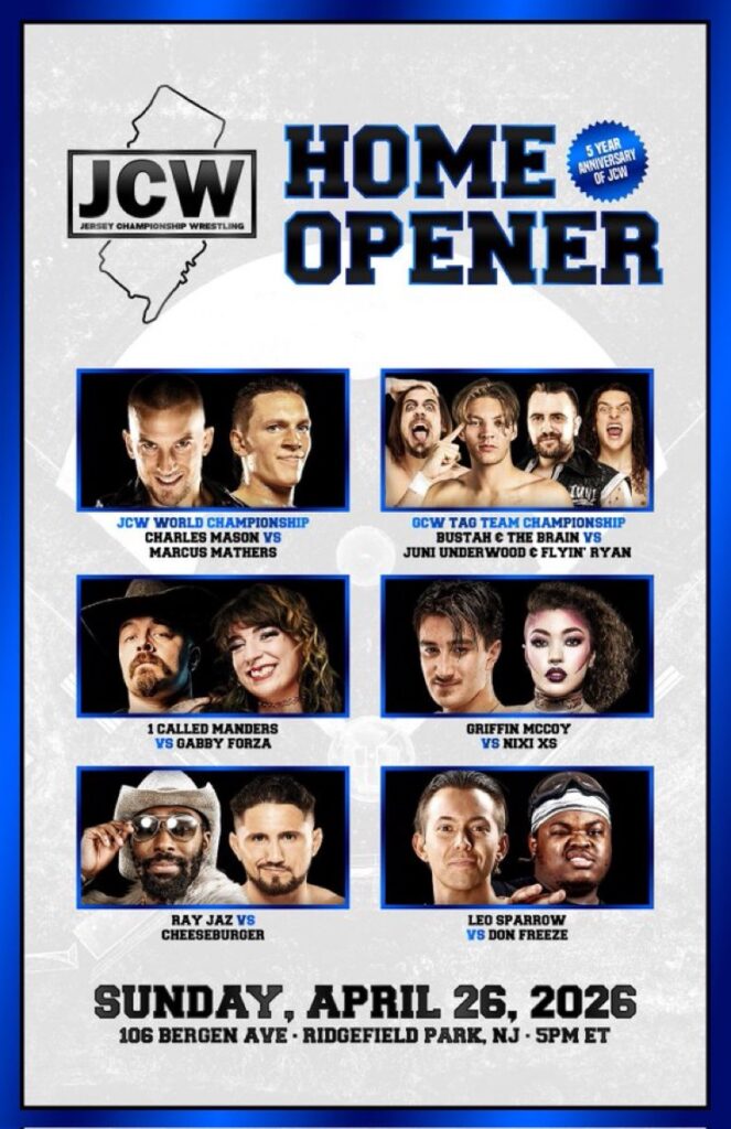 On Sunday, April 26th, Jersey Championship Wrestling kicks off the 2026 season, returning to its home for their JCW: Home Opener 2026! Live from the legendary Mecca in Ridgefield Park, NJ, tonight’s card promises to deliver high-intensity action-packed wrestling from start to finish! The show will stream on TrillerTV+ beginning at 5 PM EST.