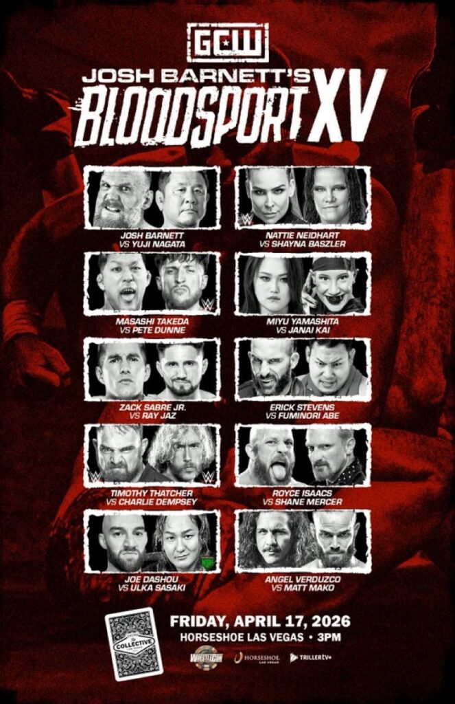 On Friday, April 17th, GCW held Josh Barnett’s Bloodsport XV live from The Horseshoe Las Vegas in Las Vegas, Nevada! The event streamed and is available for replay on TrillerTV.