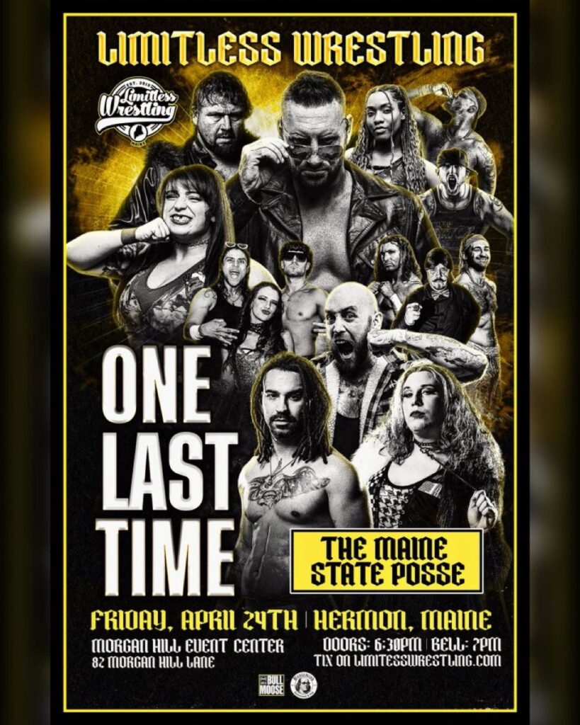 On Friday, April 24th, Limitless Wrestling comes to the Morgan Hill Event Center with their latest blockbuster show, “Limitless: One Last Time!” It’s Fan Appreciation Night in Hermon, Maine, with a ton of talent scheduled on the card. The event is streaming live on IWTV and their YouTube channel beginning at 7 PM EST.