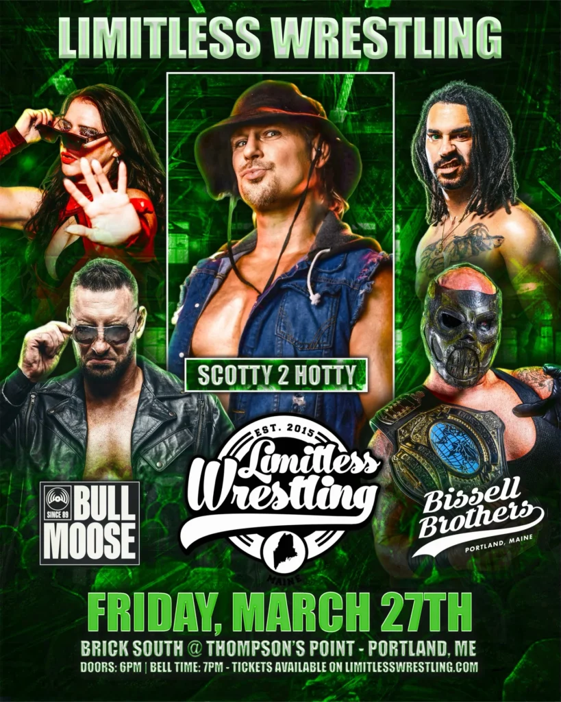 On Friday, March 27th, Limitless Wrestling returns with its latest blockbuster show, “Limitless Wrestling’s Bissell Brothers Bash,” live from Brick South @ Thompson’s Pointe in Portland, Maine! The action begins live at 7 PM EST and is streaming on Limitless Wrestling’s YouTube Channel.