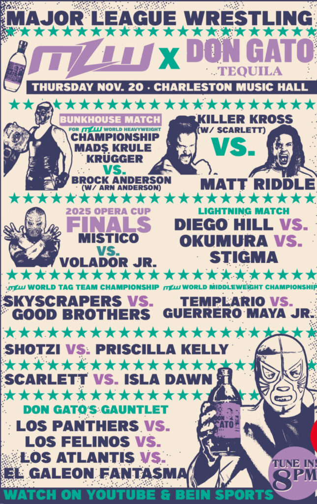 On Thursday, November 20th, Major League Wrestling partnered with Don Gato Tequila to put on its latest show from the sold-out Charleston Music Hall in Charleston, SC! The show streamed live and is available for replay on MLW’s YouTube channel.